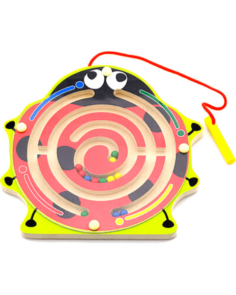 An exciting game which stimulates a childs awareness, hand eye coordination, colour recognition, fine motor skills and develops a childs number skills in fun ways. Comes with one magnetic stick which is used to trace the magnetic balls through the maze